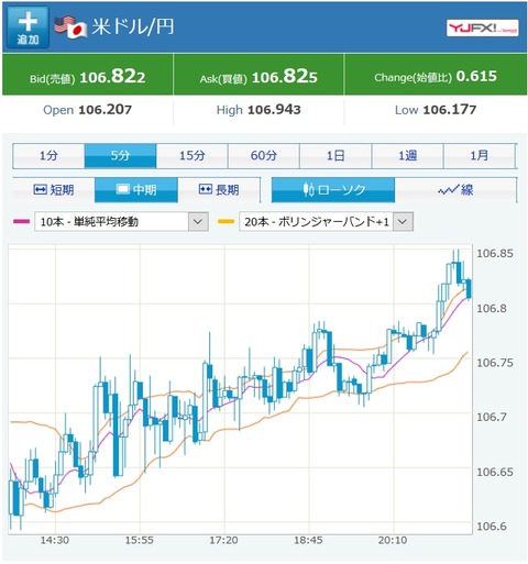 今のところ、北朝鮮リスクの減少からドル円は順調に伸び現在106円台後半。