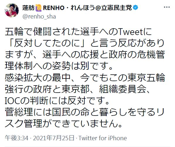 五輪で健闘された選手へのTweetに「反対してたのに」と言う反応がありますが、選手への応援と政府の危機管理体制への姿勢は別です。