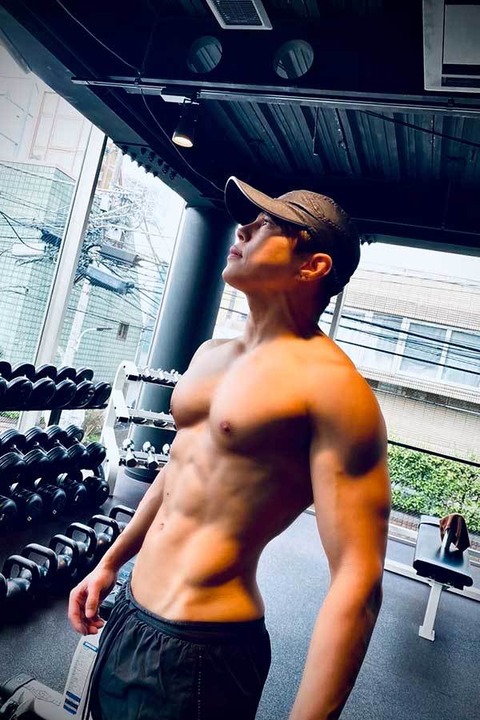 大きく盛り上がった胸筋にたくましい腕、割れた腹筋が印象的な1枚。“肉体美”を維持するため、継続的にトレーニングを行っているようだ。