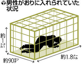父親は市に対し、「(男性が)16歳ごろから暴れ出すようになり、檻で生活させていた。家族の留守中は檻に入れていた」などと説明した。檻は高さ約1メートル、幅約1・8メートル、奥行き約90センチの大きさという。