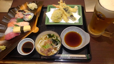 11時 なるべく豪華でコスパの良い定食を頼み、ビールを楽しむ