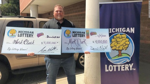 (CNN) 米ミシガン州の男性がこのほど、宝くじで400万ドル(約4億3000万円)を当せんした。この男性は3年前にも400万ドルに当せんしており、2度目の賞金獲得となった。ミシガン州サウスロックウッド在住のマーク・クラークさん(50)は今月、2度目の当せんを果たした後、「数百万ドルも当てるとは考えない。それが2度起こるなんて決して思わないだろう。自分の感情を正しく言葉にすることは難しい」と語った。