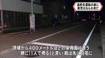 23日夜、富山県射水市で保育園から帰る途中だった5歳の男の子が軽乗用車にはねられ死亡しました。軽乗用車は3月、免許を取ったばかりの女子高校生が運転していて、警察は当時の状況を詳しく調べています。