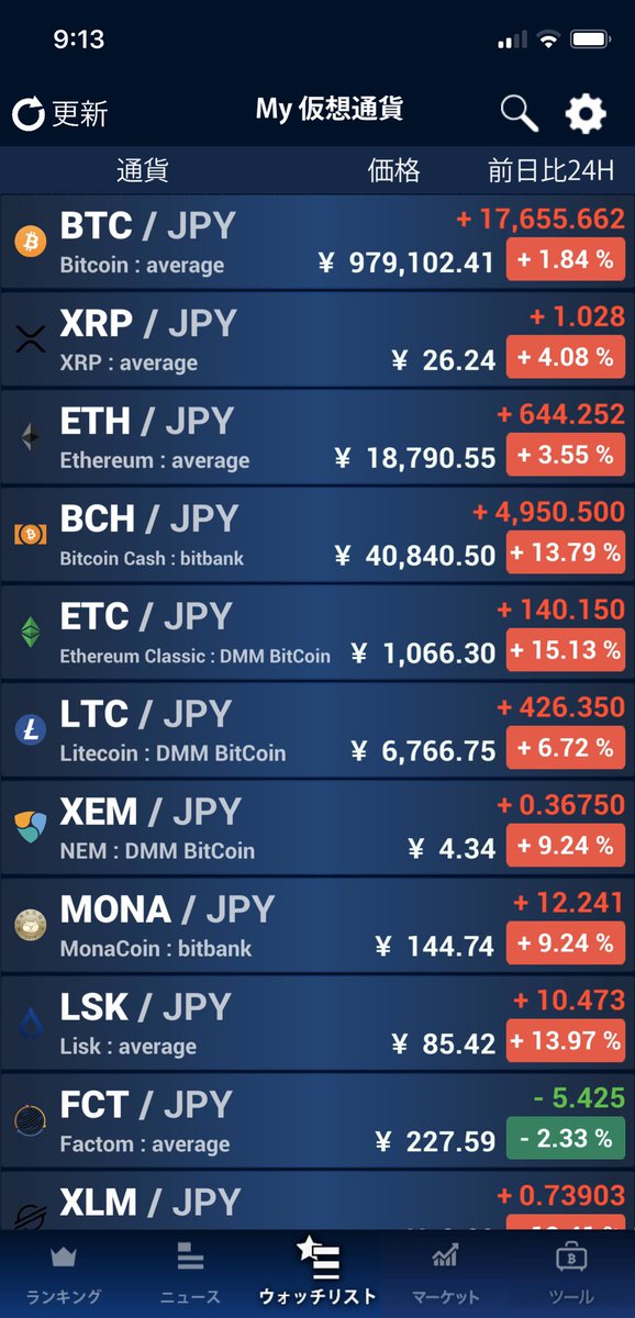 1月18日(土曜)|9時台の仮想通貨市況。#ビットコイン #BTC #イーサリアム #ETH #ビットコインキャッシュ #BCH #リップル #XRP #モナコイン #ネム #XEM #リスク #LSK #ライトコイン #LTC #ファクトム #FCT #ステラ #XLM #仮想通貨 #暗号資産 pic.twitter.com/gkHuIee3Mw
