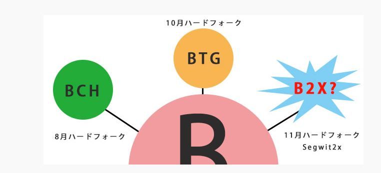 ブロックチェーンの分裂により、1ブロックあたりの容量が大きくなり取引処理速度の上がった、B2Xという新しい仮想通貨がもう1つ誕生する予定です。