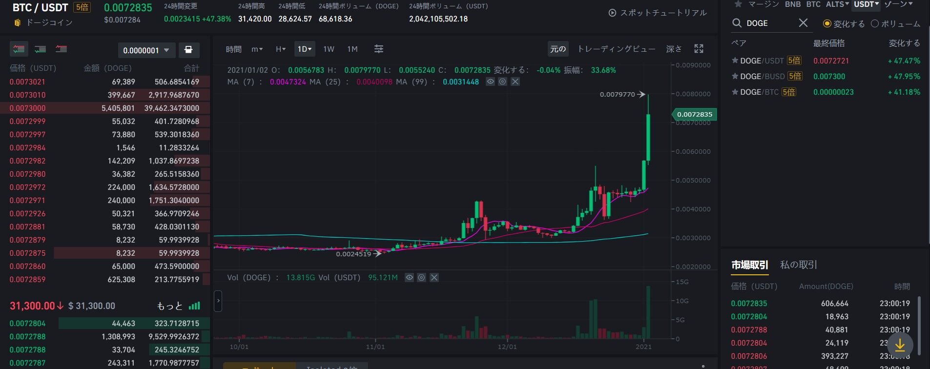 1月2日23時時点(日本時間)でDOGEが前日比50%UPしてますね。