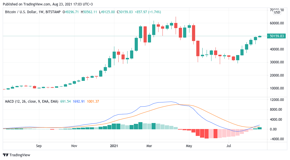 MACDは8月初めに珍しいクロスオーバーを起こした。これが今後の上昇がこれまでの市場よりも桁違いに大きくなる可能性を示している。