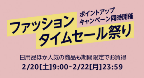 Amazonにて2021年02月20日09時00分~2021年02月22日23時59分まで「ファッションタイムセール祭り」が開催されます。