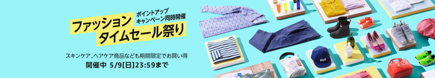 ファッションタイムセールは5月9日23時59分までです。