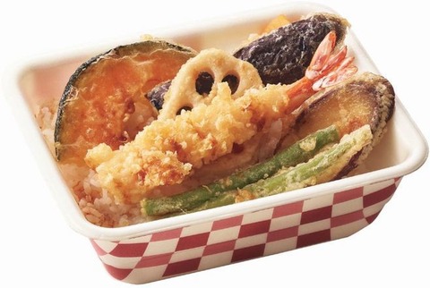 【俺たちのてんや】 天丼てんや 「海老野菜天丼弁当」テイクアウト500円 エビ・なす・かぼちゃ・さつまいも・れんこん・いんげん