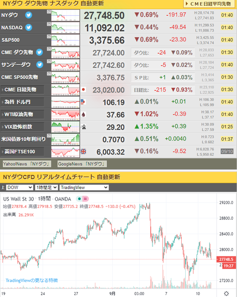 【相場】ダウ、ナス、S&P500、全てマイテン