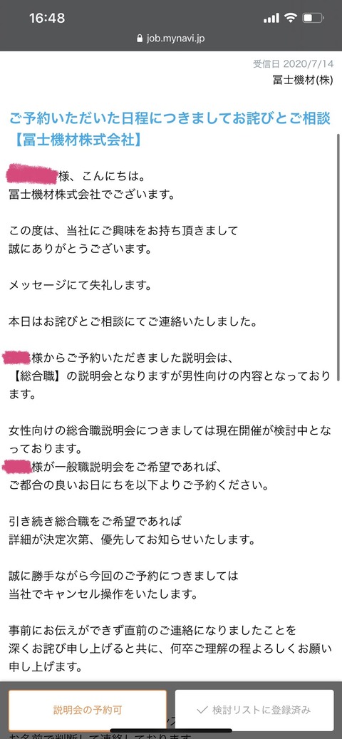 【悲報】冨士機材株式会社、総合職の説明会を「男性専用」にしてしまい大炎上www