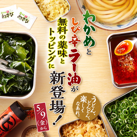 【朗報】丸亀製麺、「わかめ」と「しび辛ラー油」が無料トッピングに追加