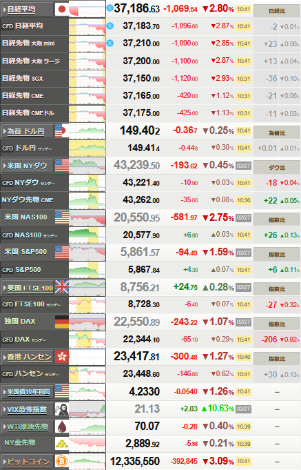 【相場】日経平均大暴落 トランプ関税懸念影響 半導体や仮想通貨もヤバイ