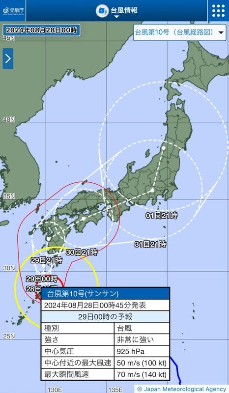 台風10号、925hPaにwwwwwwww