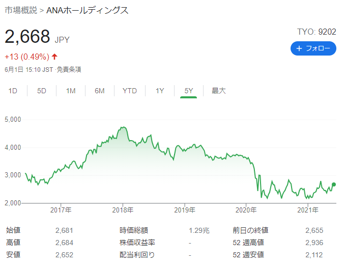 ANAの株は底は脱したように思えるのでありかも。