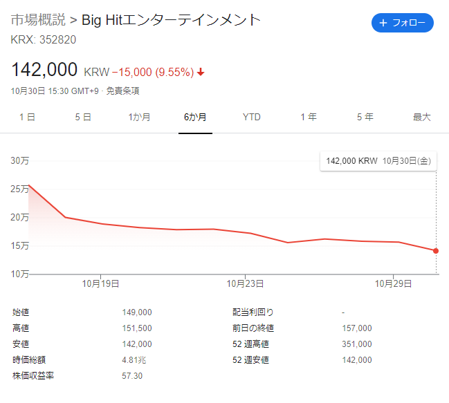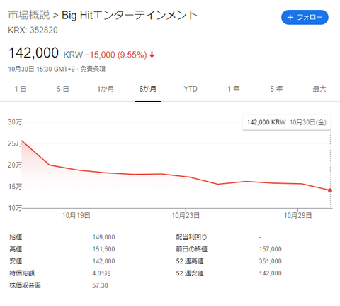 公募価格は13万5000ウォンだったので、これは週明けにも公募価格割れを起こす可能性ありだお。