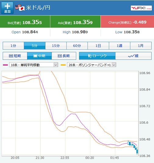 ドル円はさらに円高に、1ドル108.35円台だお。