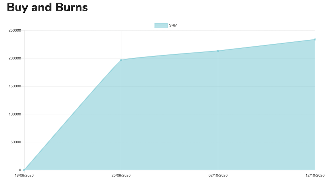 異なるブロックチェーン同士での高速なトレードが特徴的なSerumでは、独自のユーティリティトークンであるSerumトークン(SRM)のバーン(焼却)が開始された。9月25日の最初のバーンで196,592SRMがバーンされて以降、毎週バーンが行われている。