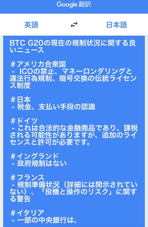 Homepage仮想通貨 masakatsu7733 8年 ago Categories: 仮想通貨 G20での仮想通貨に関する各国の規制状況を直訳してみた驚愕の結果がこちらです(画像あり) 589: 2018/03/12(月) 18:27:28.52 ID:QOUmJY76 本当かどうか知らないけど、こんな情報見つけました 直訳すいません 引用元:http://fate.5ch.net/test/read.cgi/cryptocoin/152054875/ 続きを読む Source: 仮想通貨まとめnews 『ラストアイドル』はなぜ盛り上がらないのか » « 中島みゆきと桑田佳祐が芸能界で40年生き残ってきたワケ masakatsu7733: