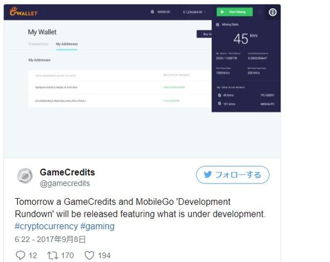 GameCreditsとMobileGoの開発概要がリリースされるというツイートがGameCreditsによって行われた。