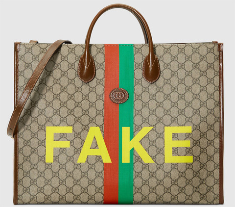 富裕層の象徴であり、着用することで自己価値とアイデンティティを付加することができ、アートの違いが分かる上級人類から絶賛されている世界的ブランドのGUCCI(グッチ)。そんなグッチが「グッチの偽物をモチーフにした本物」を販売し、大きな注目を集めている。・グッチの偽物は非常に迷惑な存在グッチやグッチの愛用者の視点から考えれば、グッチの偽物は非常に迷惑な存在であり、決して許されるものではないが、それすらファッションになりえると考え、グッチが「グッチの偽物をモチーフにした本物」をデザインしたようだ。(中略)・本物の偽物とは違う偽物の本物としてのセンスこのアイテムは、どれも大きく「FAKE」という文字がデザインされている。あまりにもダイタンな偽物アピールだが、そもそも本物の偽物は「FAKE」などと書いていないため、本物の偽物とは違う偽物の本物としてのセンスが感じられる。・本物の偽物と勘違いされるかも!?本物の偽物とは違う偽物の本物を本物の偽物と勘違いして税関などで没収されるトラブルがないと良いのだが、さすがにここまで堂々と「FAKE」と書かれていれば本物の偽物とは違う偽物の本物を本物の偽物と勘違いされることはないかもしれない。(以下略)