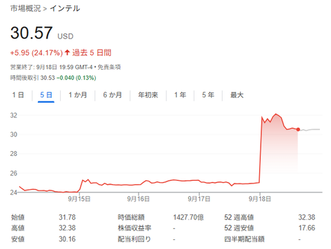 Intelは最近米国の国策銘柄っぽくなってきた印象。