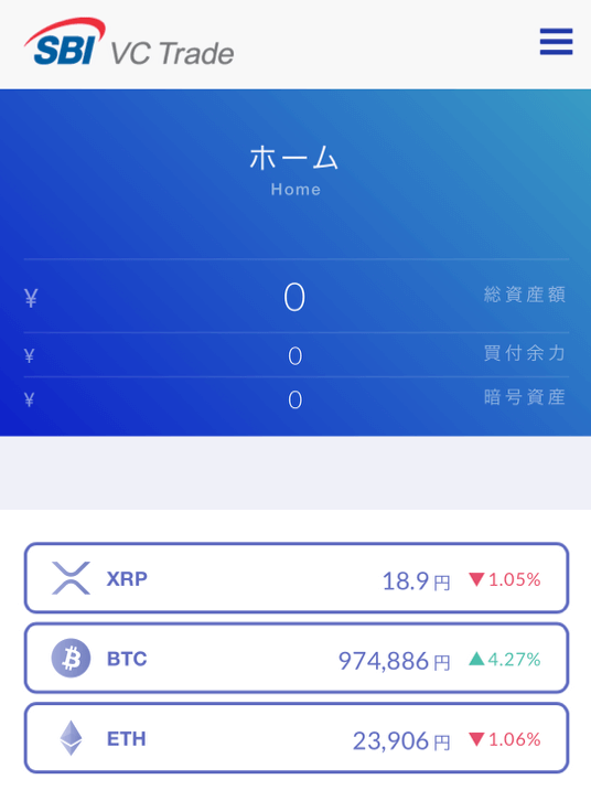 ホーム画面では、販売所・取引所の価格一覧をサポート。
