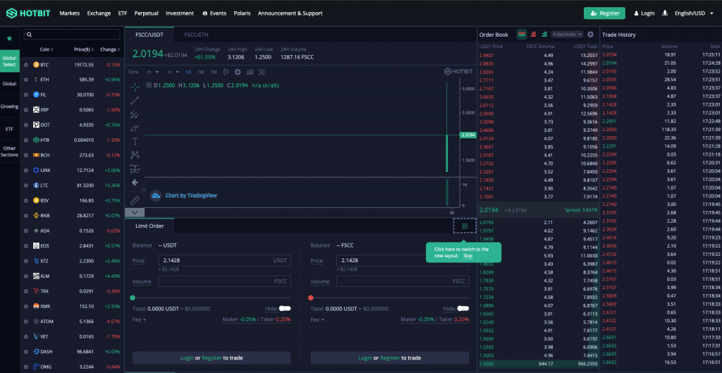 上海と台北に拠点を置く暗号資産交換所(仮想通貨取引所)Hotbitに、国内取引所Zaif Exchangeで取り扱っているFSCC(フィスココイン)が上場、取引が開始されたことがわかった。