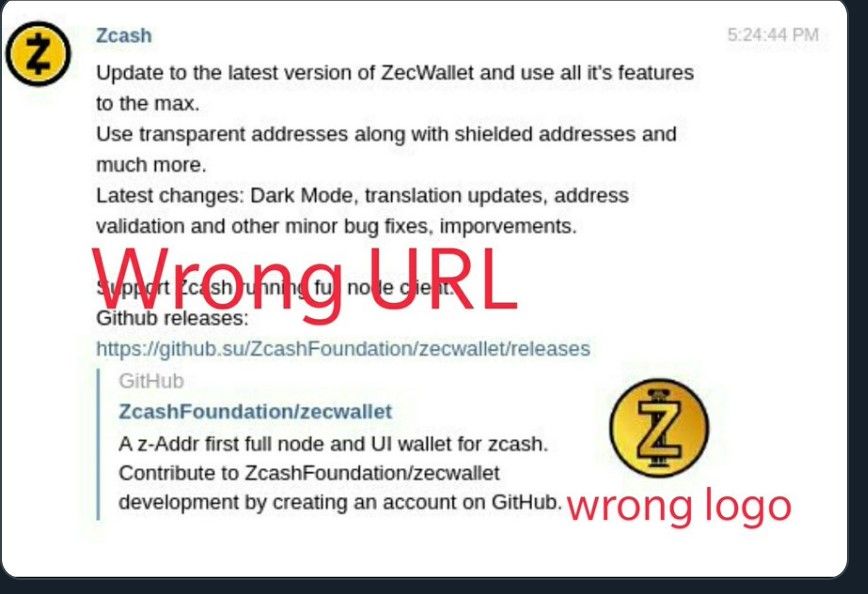 Zcash(ZEC)のコミュニティは公式ウォレットであるZecWalletの偽のバージョンが発見されたとして注意喚起を行なっている。この偽のバージョンは資産を盗み出す可能性のあるマルウェアが仕込まれていると見られている。